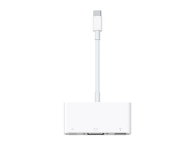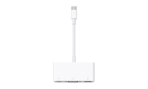 Met de USB-C-naar-VGA-multipoort-adapter kun je je MacBook met USB-C-poort aansluiten op een VGA-scherm. Daarnaast kun je via deze adapter een standaard USB-apparaat en USB-C-oplaadkabel aansluiten.