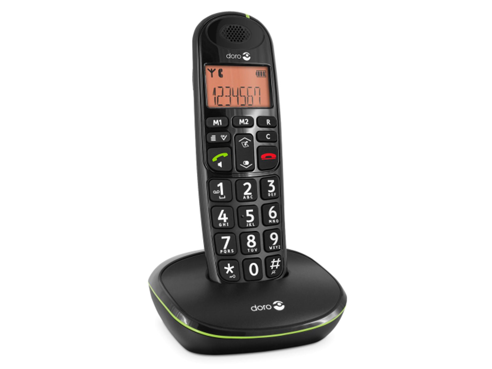 De DORO PHONEEASY® 100W is een draagbare telefoon die uitblinkt in gebruiksgemak. Zijn grote display is duidelijk leesbaar en dankzij zijn grote toetsen vergist u zich niet meer van nummer. De luide beltoon en het scherm laten u meteen weten wanneer u een oproep krijgt. Oproep gemist? Geen probleem, met zijn nummerherhaling kunt u de beller gewoon weer terugbellen. Om de telefoon op te nemen hoeft u enkel op het groene knopje te drukken waarmee u ook ineens handenvrij kunt bellen. De telefoon is tevens geschikt voor dragers van een gehoorapparaat. Hij beschikt ook nog eens over twee geheugentoetsen waaronder u uw belangrijkste telefoonnummers kunt opslaan zodat u deze in nood snel bij de hand hebt.