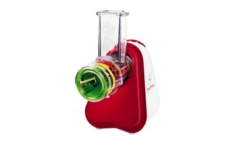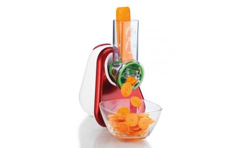 Een multifunctioneel apparaat voor het eenvoudig raspen en snijden van groente en fruit, kaas (gruyère en Parmezaanse kaas), noten, chocolade