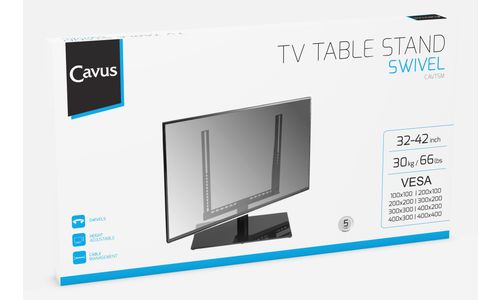 Cavus heeft met de 60° draaibare TV voet een goede oplossing. De draaibare TV voet kan 30° naar links en 30° naar rechts draaien zodat je altijd vanaf je favoriete plek tv kunt kijken. Daarnaast biedt de draaibare TV voet nog veel meer praktische voordelen. De hoogwaardige glazen TV voet is compact zodat je deze ook op kleinere TV meubels kunt plaatsen. Dankzij het kabelmanagement kun je netjes alle kabels wegwerken.