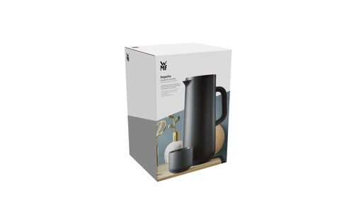 Mag het een beetje meer zijn? De thermoskan voor koffie uit de WMF Impulse-serie speelt in op de trend naar glanzende metalen accenten voor de tafel. In tijdloos roestvrij staal of elegant vintage koper en met een jong, puristisch design is de 1 liter kan een echte blikvanger. Uiteraard zonder aan functionaliteit in te boeten: dankzij de automatische sluiting kan de koffiecontainer eenvoudig worden bediend met slechts een lichte aanraking van het deksel en het hoogwaardige glazen inzetstuk houdt dranken warm of koud - afhankelijk van uw smaak. Met details van kunststof, Cromargan® en siliconen is de thermoskan voor koffie ook bijzonder robuust, zodat je lang plezier zult hebben van je nieuwe trendy item.