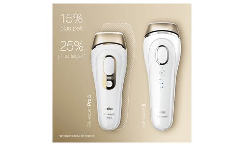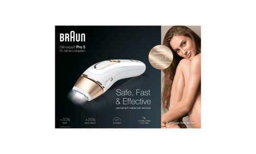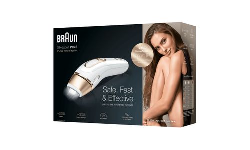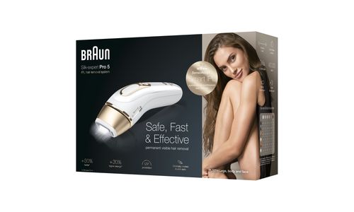 De nieuwste generatie IPL ontharing van Braun Silk·expert Pro. Silk·expert Pro 5 is de veiligste, snelste en meest efficiënte IPL*-behandeling voor zichtbare vermindering van het haar in slechts 4 weken*. De veiligste IPL-technologie, klinisch getest en dermatologisch goedgekeurd als veilig voor de huid door een internationale huidgezondheidsorganisatie (Skin Health Alliance). Past zich automatisch en voortdurend aan je huidtint aan voor een optimale balans tussen doeltreffendheid en veiligheid† voor zichtbaar permanente ontharing. De snelste IPL-technologie - 2 keer sneller IPL-ontharen dan met de vorige Silk·expert 5: beide onderbenen kunnen binnen 5 minuten worden behandeld. Het bevat een premium etui om het apparaat op een handige manier in op te bergen en mee te nemen, en een Venus scheermesje voor de voorbehandeling van het IPL-ontharen. Nieuw compact design, 15% kleiner en 25% lichter, voor gebruiksgemak en moeiteloze behandeling 400.000 flitsen, 30% meer dan bij de vorige Silk·expert 5.