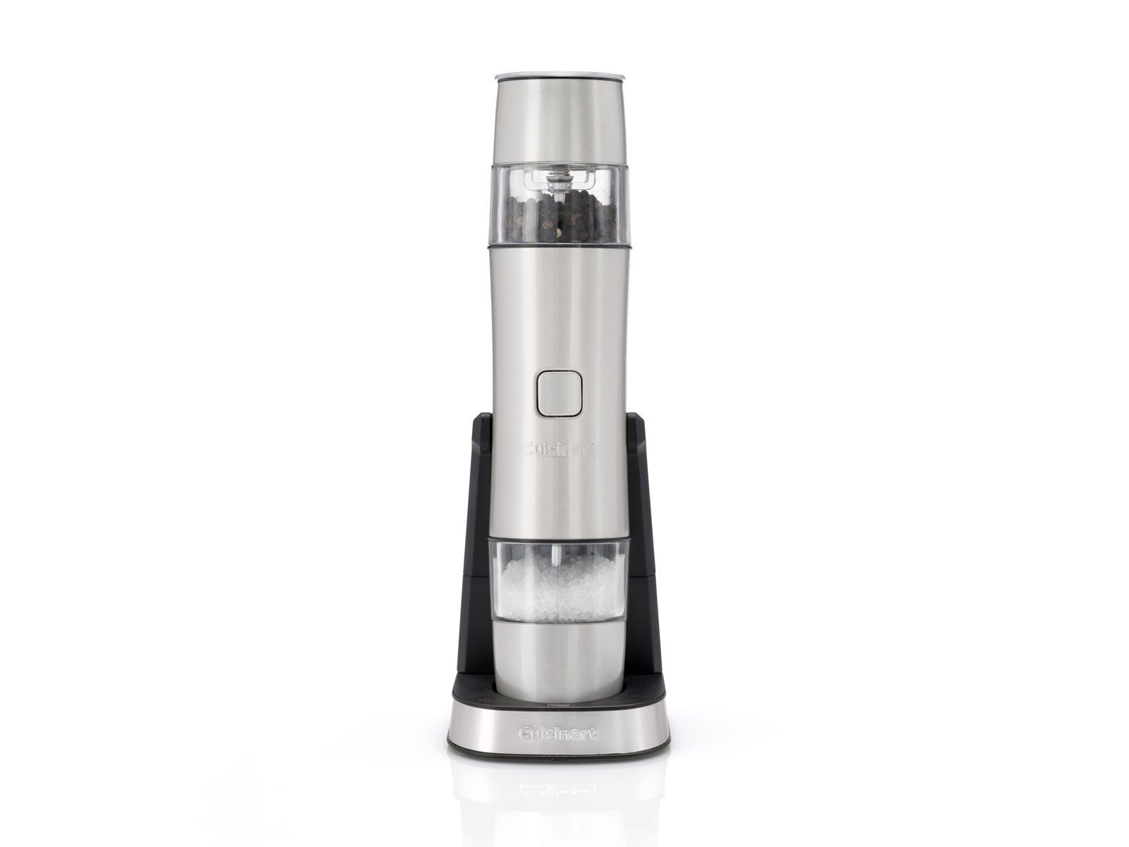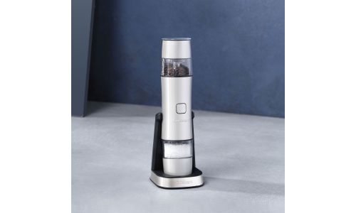 Deze stijlvolle, herlaadbare zout- en pepermolen zorgt ervoor dat je je recepten kunt kruiden met één druk op de knop. Geen batterijen nodig, zeer licht in gewicht; keer de molen eenvoudig om om te wisselen tussen zout en peper.