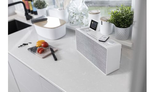 De Evoke Home is niet alleen heel slim qua formaat, maar ook een slimme radio. Als zodanig is de Evoke Home klaar voor elke ontvangstkwaliteit en combineert hij traditionele analoge radio (FM), digitale radio (DAB) en internetconnectiviteit voor een nog betrouwbaardere en robuustere luisterervaring. Een slimme radio biedt meer opties, een robuustere radio-ontvangst, on-demand audiostreaming van podcasts en de mogelijkheid om er eenvoudig voor te zorgen dat het apparaat up-to-date blijft met updates. In het onwaarschijnlijke geval van slechte FM/DAB+-signalen is de Evoke Home voorbereid met meer dan 85.000 internetradiozenders en podcasts van over de hele wereld via een internetverbinding.