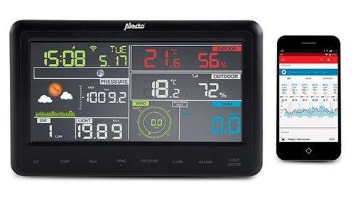 - Sensoren voor: UV en zonnestralen, luchtvochtigheid, windsnelheid en windrichting, luchtdruk, binnen- buiten- en gevoelstemperatuur, neerslag