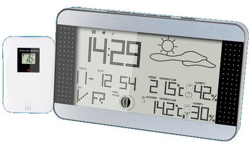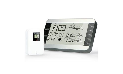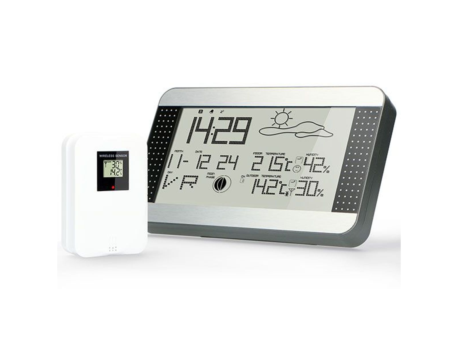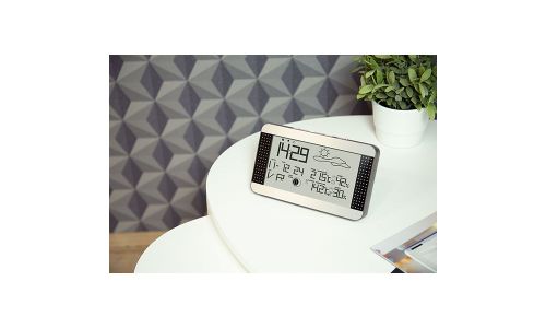 De geanimeerde weersvoorspelling omvat veel informatie. Je krijgt de binnen- en buitentemperatuur en de luchtvochtigheid voor zowel binnen als buiten. Je ziet de laagste en hoogst gemeten temperatuur en luchtvochtigheid van het afgelopen etmaal. Bovendien kun je de maanstand aflezen en gaat er bij een te lage of hoge temperatuur een alarm af. Daarnaast heb je een klok met datum en alarm, een eeuwigdurende kalender en een batterij-bijna-leeg indicatie. Met Alecto kies je voor ee n doordacht en gebruiksvriendelijk product van hoge kwaliteit.