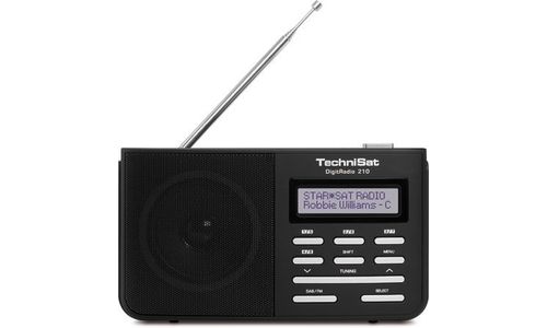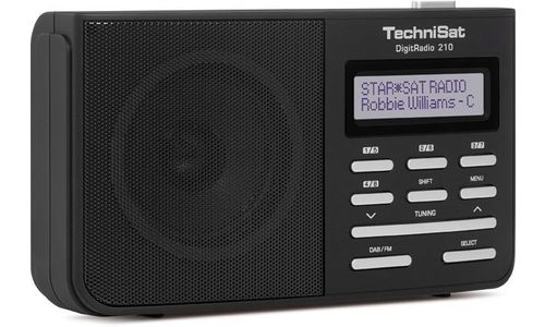 De TechniSat DIGITRADIO 210 is een draagbare DAB+ digitale radio waarmee je ook onderweg DAB+ en FM kunt ontvangen. Met eersteklas geluidskwaliteit, een tweeregelig LCD-display voor het weergeven van zendernamen en aanvullende informatie, en 8 voorkeurzenders voor elk voor VHF en DAB+, biedt de DIGITRADIO 210 alles wat u nodig heeft voor DAB+ digitale radio-ontvangst. Met vier vervangbare batterijen (AA) kan het apparaat eenvoudig als mobiel apparaat worden bediend. De radio kan ook stationair worden gebruikt, b.v. B. in de keuken of in de kinderkamer.