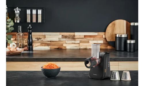 Het voorbereiden van groenten was nog nooit zo eenvoudig met uw Eco Respect-groentesnijder! De elektrische snij- en raspmachine van Moulinex heeft een eenvoudig kegelsysteem met kleuren. Het is een gebruiksvriendelijk apparaat om al uw groenten voor te bereiden. Rasp, snijd en versnipper tot in de perfectie, met uitzonderlijke resultaten voor al uw favoriete recepten en ingrediënten: groenten, fruit, kaas, chocolade en nog veel meer. Maak recepten zoals frisse en heerlijke gesnipperde salades, verrukkelijke groentekoekjes en knapperige aardappelkrokantjes die er elke keer weer perfect uit komen. Dankzij de grote vulopening hoeft u op voorhand minder ingrediënten te snijden. Het apparaat is bovendien eenvoudig te reinigen en op te bergen. Deze ecologisch ontworpen groentesnijder is de perfecte finishing touch voor uw keuken. Het is een aantrekkelijk en compact toestel dat naadloos past in elke keukeninrichting.