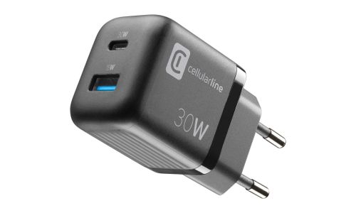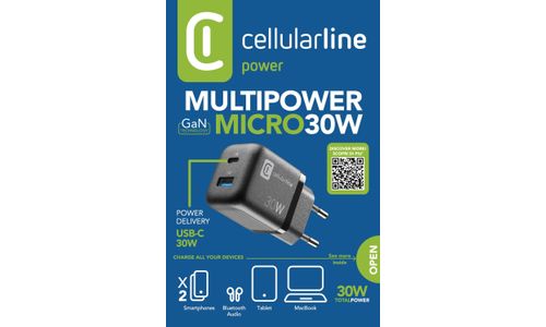 Reislader 30W, GaN multipower micro USB-A + USB-C PD, zwart