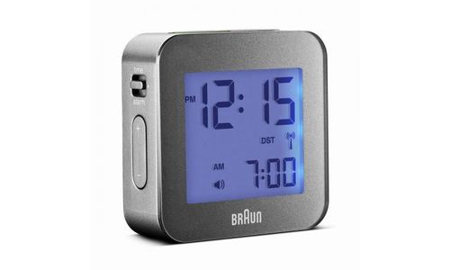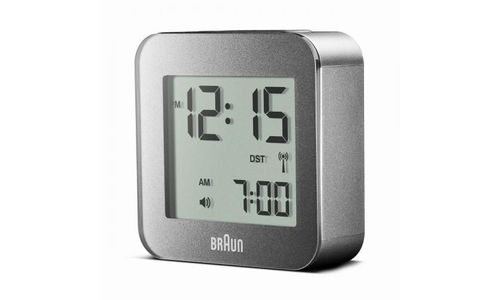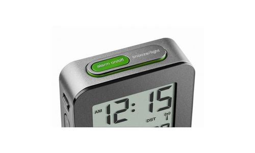 Alarm Clock, LCD, Radio Controlled, Table Clock Dimensions 5.8 x 5.8 x 2 Batteries LR6 Global Radio Controlled Travel Alarm 10 Second Backlight Snooze 12/24 hour