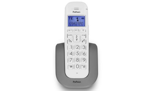 De Profoon PDX-2608 is een draadloze huistelefoon met groot verlicht display en grote toetsen. Het oog wil ook wat en dat snappen we bij Profoon. Dus als u zoekt naar een prachtig ontworpen (draadloos) huistelefoon overweeg dan de PDX-2608 DECT telefoon uitgevoerd in chique grijs-wit-tint. De Deze moderne DECT-draadloos huistelefoon combineert stijl met functie.