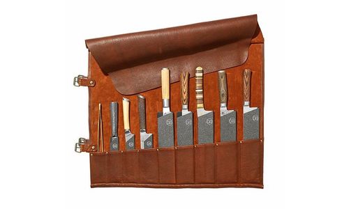 Deze unieke messenrol is het perfecte item om je messen veilig in te vervoeren, of om je meest kostbare messen in op te bergen. Hij is gemaakt van 100% rundleer, en de vakken zijn allemaal verschillend van formaat. Zo kun je er zowel kleine als grote messen in kwijt. In deze unieke chef messenrol zijn je messen altijd beschermd!