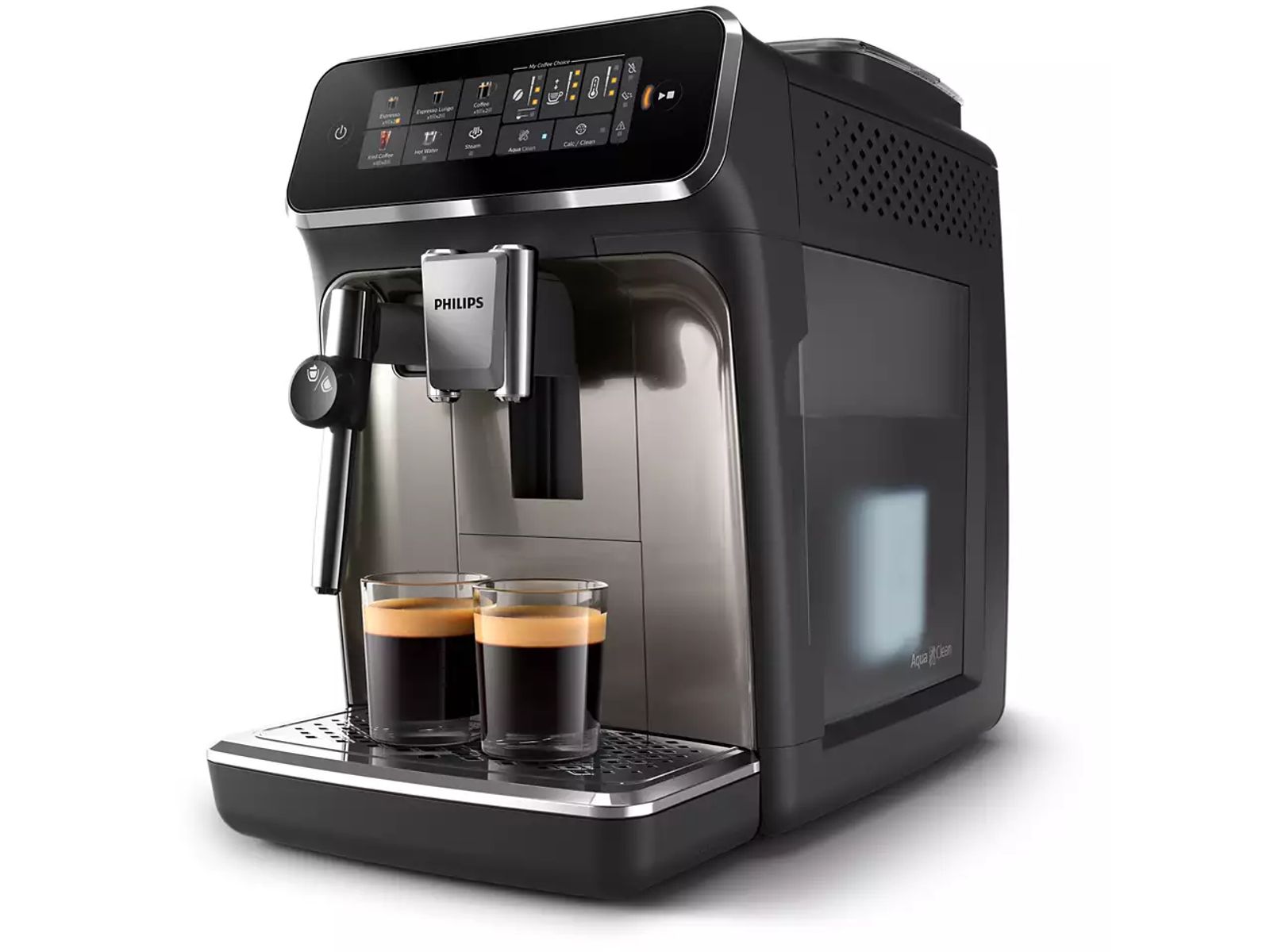 Selecteer eenvoudig uw favoriete dranken dankzij het moderne Philips LatteGo aanraakdisplay met gekleurde pictogrammen. Pas uw koffie aan op uw manier met de My Coffee Choice-functie: kies uw favoriete koffiesterkte, hoeveelheid en melkschuimniveau, helemaal naar uw smaak.