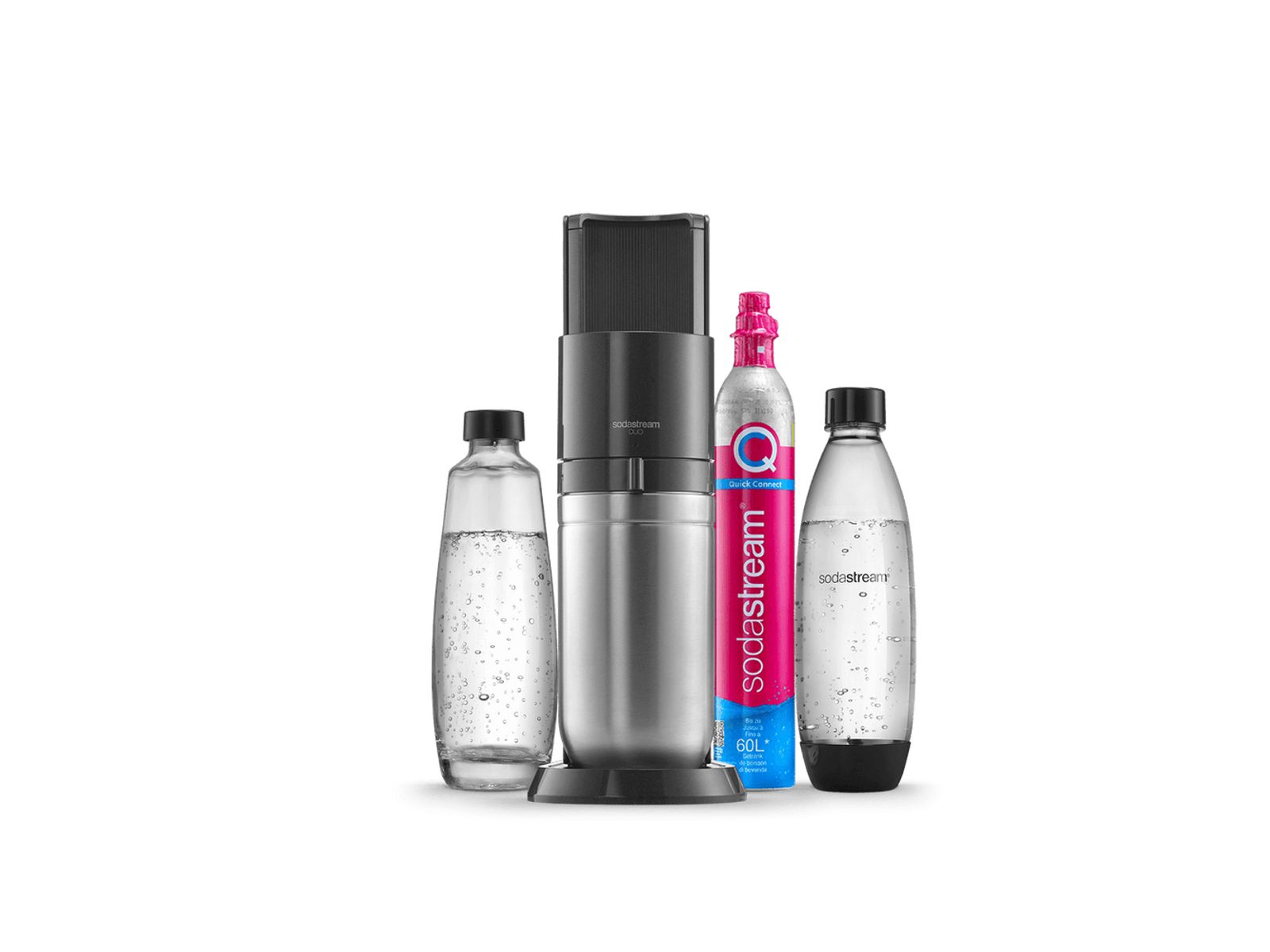 De SodaStream DUO is ons meest exclusieve bruiswatertoestel. Het toestel kan gebruikt worden met zowel glazen als herbruikbare plastic flessen. Je kunt dus overal van je favoriete bruisende drankje genieten met de glazen karaf voor thuis en een herbruikbare plastic fles voor onderweg.