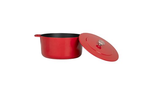 De geëmailleerde Dutch Oven is perfect voor slowcooking, smoren, braden en vele andere manieren van koken. Kookpot van 100% gerecycled gietijzer, voorzien van een sterke emaille coating en een stoer design. Verkrijgbaar in drie kleuren: rood, oranje en zwart. Inhoud: 12 L. Geschikt voor iedere warmtebron.