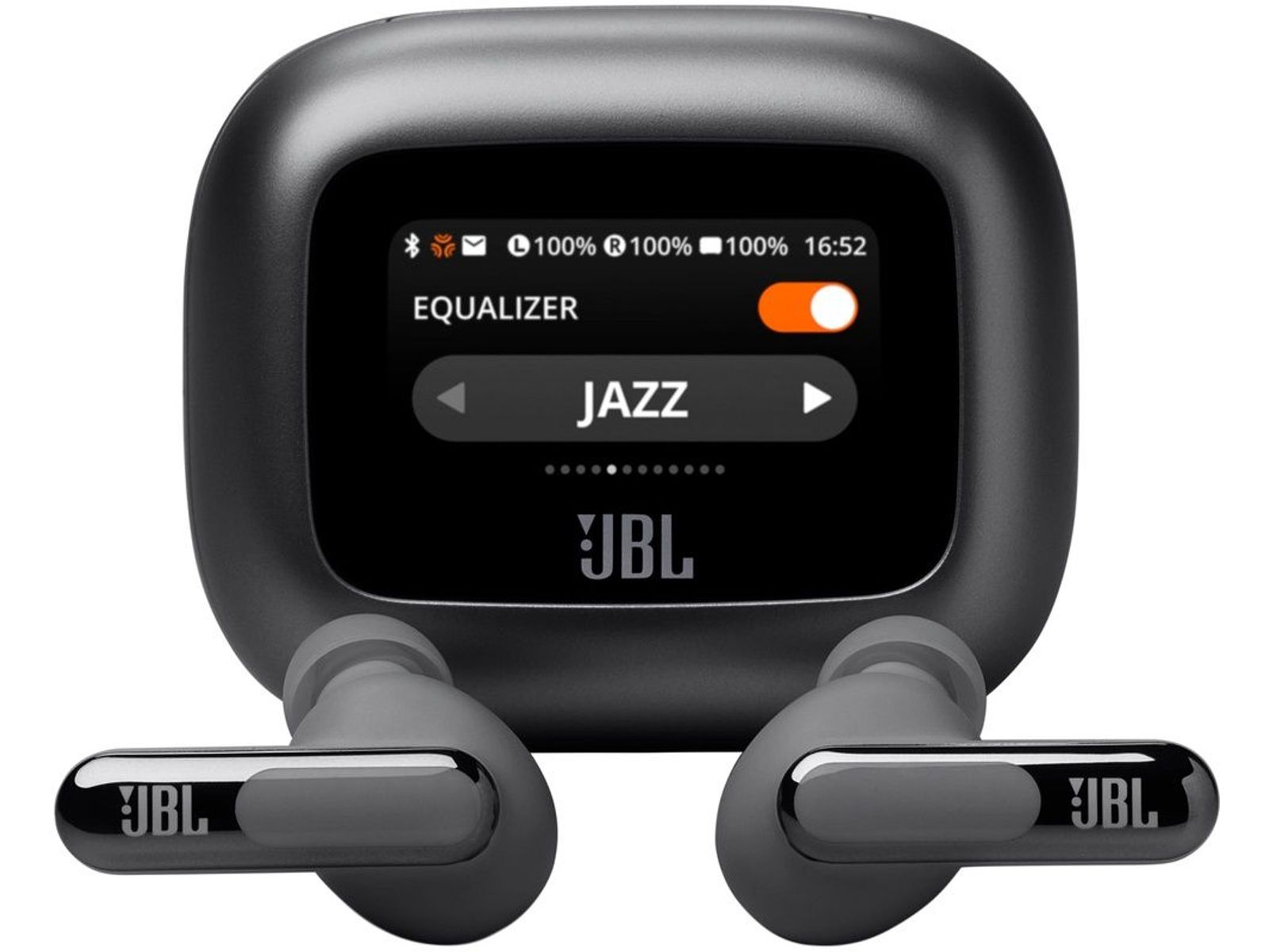 Pas je geluid aan zonder naar je telefoon te kijken. Gebruik de regelaars op de Smart Charging Case™ van de JBL Live Beam 3 volledig draadloze noise-cancelling oordopjes met Hi-Res Audio om al hun functies aan te passen zonder de JBL-app op je apparaat te openen. Pas het volume en de equalizer aan, bedien je muziek, beantwoord telefoongesprekken, bekijk berichten. Je kunt zelfs de screensaver aanpassen met je favoriete foto's. En dat is nog voordat je zelf kunt genieten van de JBL Signature Sound van de Live Beam 3-oordopjes. De allerbeste True Adaptive Noise Cancelling zorgt ervoor dat je niet afgeleid wordt. Met JBL Spatial Sound ga je volledig op in het kijken van films. En als je een telefoontje krijgt zorgen zes microfoons voor een perfecte geluidskwaliteit, zelfs in de meest lawaaierige omgeving. Dit alles plus 48 uur gebruikstijd: 12 uur in de oordopjes* en nog eens 36 uur in de case. Daarnaast zijn de oordopjes draadloos oplaadbaar. De oplaadcase heeft een lus waarmee je 'm aan een keycord kunt vastmaken, voor nog meer gemak. Geweldig geluid was nog nooit zo eenvoudig. (*met ANC uit)