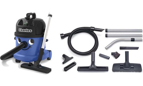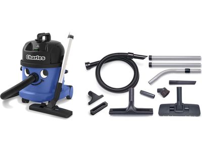 De Numatic Charles CVC371-2 Nat- en droogzuiger is een stofzuiger die zich op een droge of natte ondergrond even goed thuis voelt. De Twinflo’-motor is krachtig en stil en kent een garantie van 2 jaar. De buizen zijn van RVS en zullen nooit roesten. Bij de machine worden accessoires geleverd zoals onder meer twee zuigmonden, één voor natte vloeren en één combinatiezuigmond voor tapijten en harde vloeren. Charles kan met of zonder vrolijk gezicht gebruikt worden.