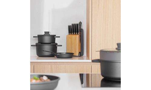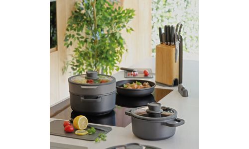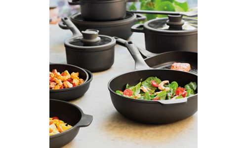 Een ei omdraaien, een stukje vlees bakken of een kipgerecht bereiden, het kan met weinig tot geen olie in deze lichtgewicht braadpan van 20 cm. Dankzij de gezonde keramische CeraGreen en meerlaagse antiaanbaklaag laat het voedsel gemakkelijk los en kan je de pan moeiteloos schoonmaken. De braadpan is gemaakt van hoogwaardig gegoten aluminium dat de warmte snel en gelijkmatig verdeelt en geschikt is voor alle kookplaten, inclusief inductie, alsook downdraft afzuigsystemen. Deze pan is ideaal voor het bakken, braden en bruinen van voedsel en het siliconen inzetstuk in de handgreep garandeert een comfortabele zachte grip.