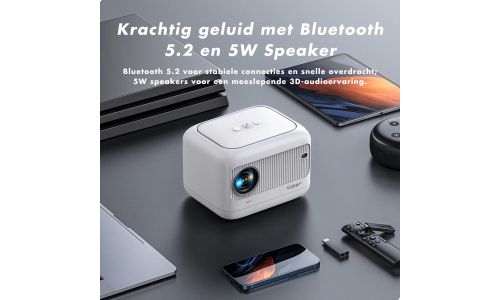 Voordelen De YABER L1 biedt veelzijdigheid en kwaliteit in een compact apparaat. De elektrische focus maakt handmatig scherpstellen overbodig, terwijl de 6-laagse glazen lens voor heldere beelden zorgt. Dankzij de krachtige Wi-Fi 6-technologie geniet je van stabielere en snellere draadloze verbindingen, wat ideaal is voor ononderbroken streaming. Bovendien is de projector uitgerust met een Bluetooth 5.2-module, zodat je eenvoudig kunt verbinden met externe audio-apparatuur voor een verbeterde geluidservaring.