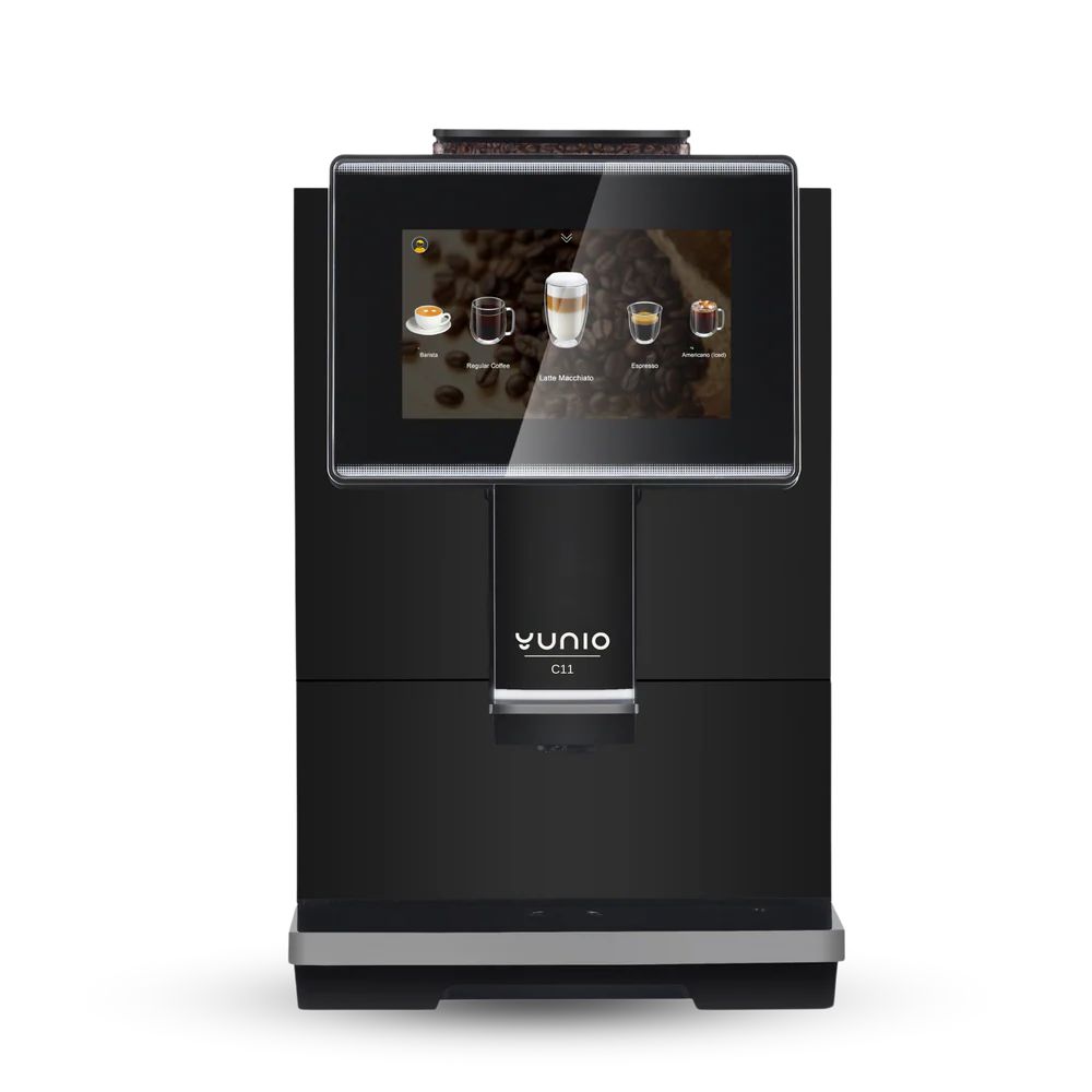 De Yunio C11 is een stijlvolle koffiemachine, perfect voor zowel thuis als op kantoor. Met zijn ruime, slimme touchscreen en een ontwerp dat geluid effectief dempt, is de Yunio C11 de ideale barista voor jouw werkplek of keuken. Zelfs wanneer je bezoek hebt, kan iedereen genieten van een op maat gemaakte koffie. Pas eenvoudig de sterkte, de maling van de bonen en de hoeveelheid melk aan voor de perfecte koffiebeleving, precies naar ieders smaak.