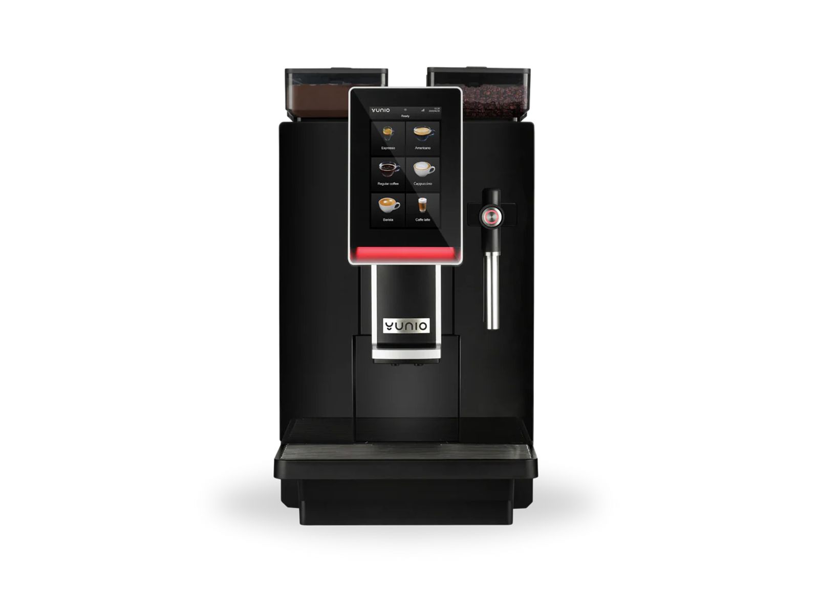De Yunio X80 is een sterke espressomachine, met veel selecties en uitgebreide instelmogelijkheden van de smaak van koffies en melkkoffies. Deze koffiemachine is voorzien van een aparte heet wateruitloop en daarnaast ook standaard voorzien van een poederunit.