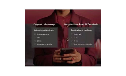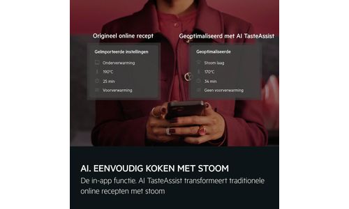 AI TasteAssist transformeert traditionele recepten met stoom. Stuur een webrecept naar je oven via onze app. De AI optimaliseert dan de tijd, temperatuur en ovenfunctie, zodat jij met gemak voedzamere, heerlijke gerechten op tafel zet.