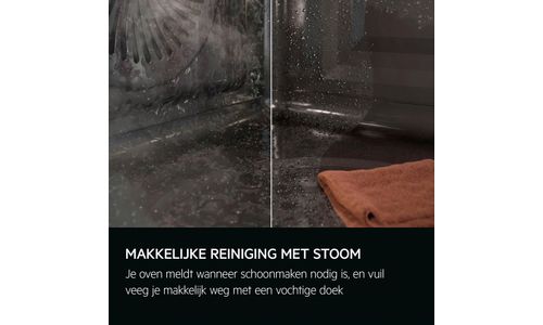 Stoomreiniging waarschuwt je wanneer het tijd is om te reinigen, vuil verwijder je vervolgens eenvoudig met een vochtige doek. Door gebruik te maken van stoom om te reinigen, is tot 95% minder energie nodig dan met pyrolytische reiniging.