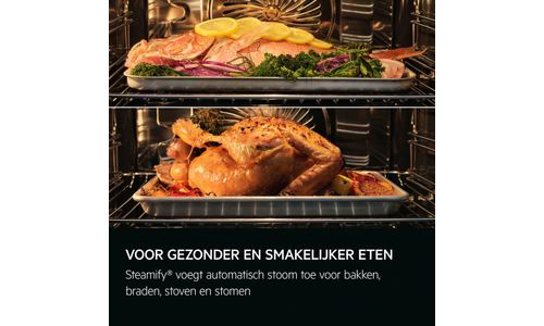 De SteamPro oven biedt je bak-, braad-, stoof- en stoomfuncties om het beste uit je recepten te halen. Steamify® voegt de juiste hoeveelheid stoom toe, waardoor je favoriete gerechten knapperig en smakelijk worden en tot 90% vitamine C behouden blijft.