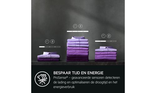De geavanceerde vochtigheidssensoren van PreciseDry helpen tijd en energie te besparen. Ze passen de tijd en het energieverbruik proportioneel aan op basis van de lading. Geven de juiste zorg aan elke lading, zodat kleding er langer op zijn best uit ziet en aanvoelt.