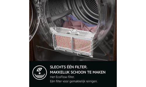 Maak onderhoud van je droger nog eenvoudiger met EasyClean-filter. Deze is gemaakt om te worden geopend als een boek en houdt pluisjes vast, waardoor het snel en eenvoudig kan worden schoongemaakt. Je droger blijft soepel werken, levert geweldige resultaten af en vermindert energieverspilling.