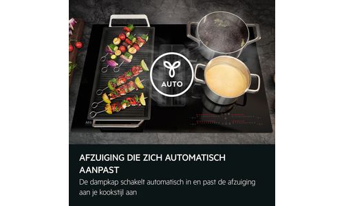 Automatische afzuigingsregeling zorgt ervoor dat je je kunt richten op wat belangrijk is – koken. De kookplaat schakelt de afzuiging automatisch in en past het niveau aan op basis van je kookactiviteiten, zodat je keuken fris blijft en je handen vrij zijn.
