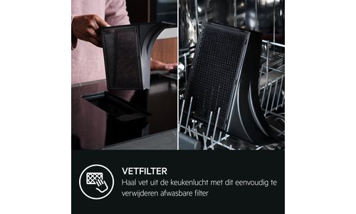 De vetfilter en OdourClean Plus-koolstoffilter kunnen eenvoudig gereinigd worden in de vaatwasser als deze volledig vrij is van detergenten, zodat je keuken fris blijft en de afzuiging langer optimaal blijft functioneren. Koolstoffilters kunnen na reinigen tot 8 keer worden geregenereerd voor een extra levensduur tot 3 jaar.
